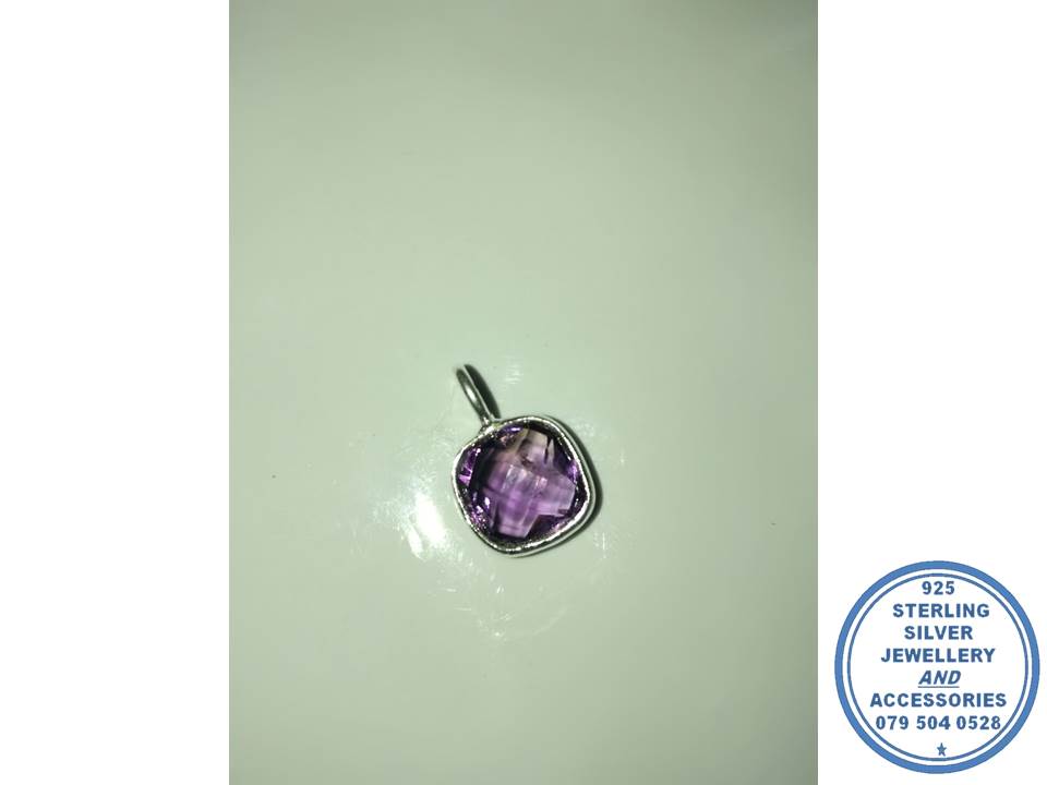 925 Sterling Silver Amythist Pendant ONLY Square. Excl chain