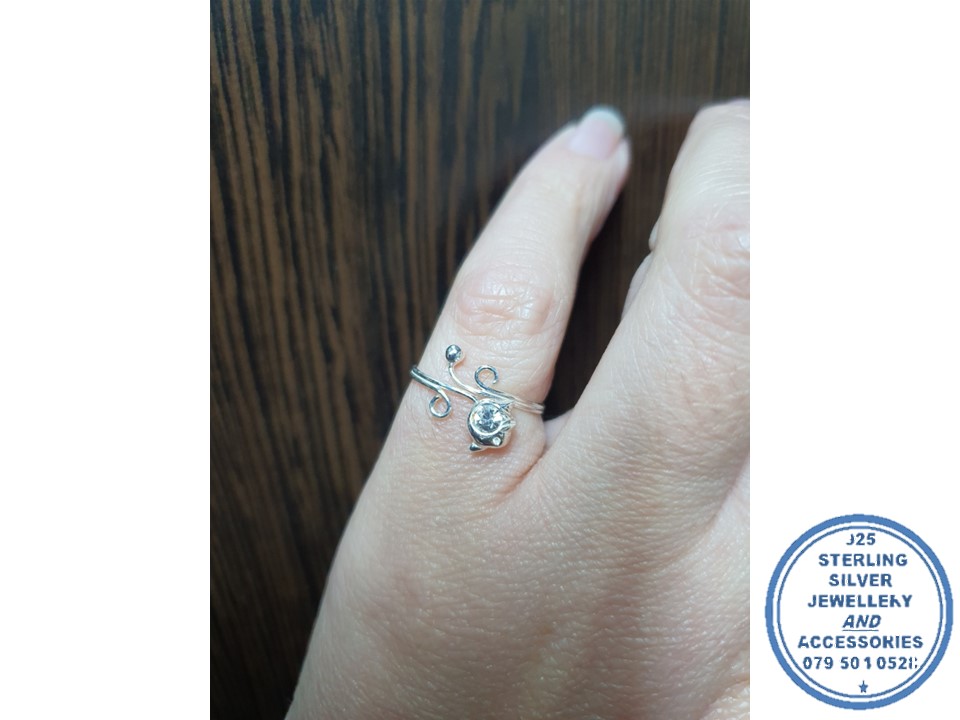 925 Sterling Silver Clear Cubic Flower Twirl Toe Ring