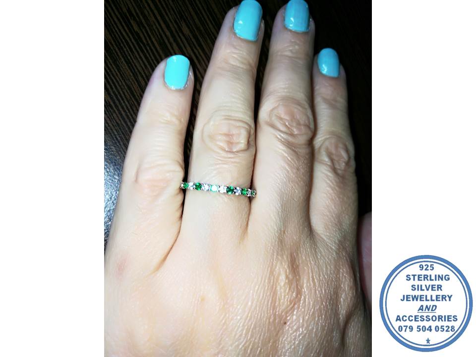 925 Sterling Silver Designer’s Green and Clear Cubic Wedding Band Stack Ring