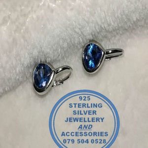 925 Sterling  Silver Earrings 1 pair Blue cubic detail