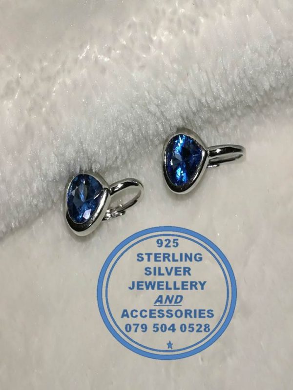 925 Sterling Silver Earrings 1 pair Blue cubic detail