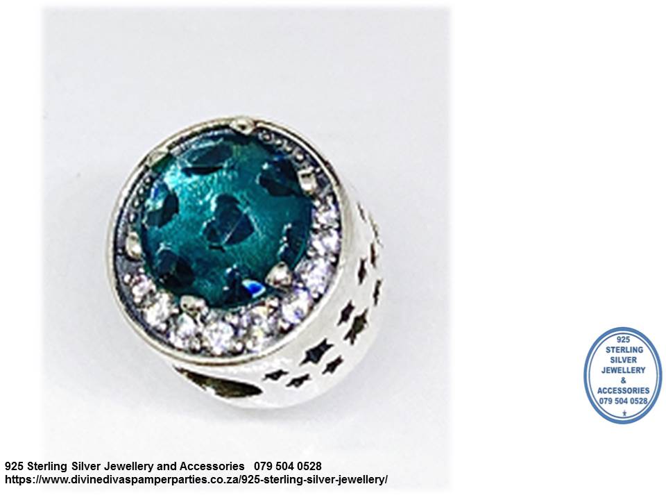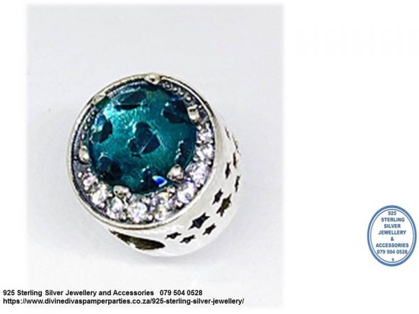 925 Sterling Silver GreenBlue Cubic Detail Charm Bead. European Style Bracelet