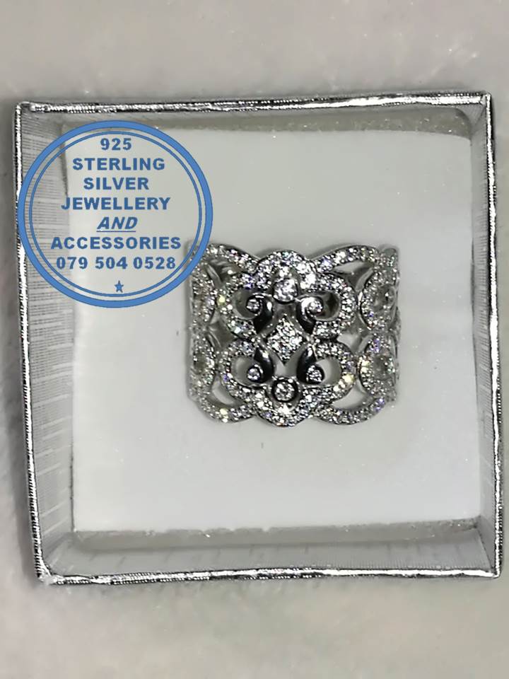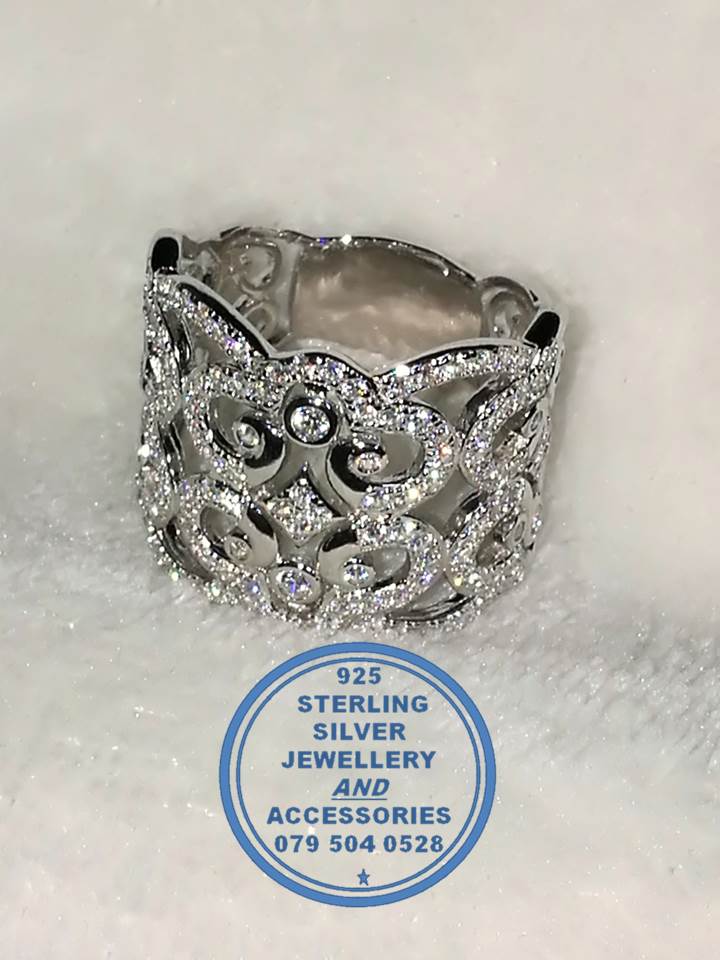 925 Sterling Silver Ring with cubics set  in multiple Twirls around a center cubic. Showstopper statement Ring.