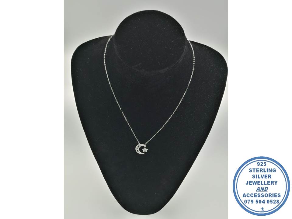 925 Sterling Silver Trendy Boho Moon Star Pendant Necklace Statement 42cm +3cm extender