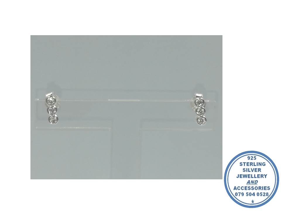 925 Sterling Silver Tube Setting 3 Round Cubic Studs