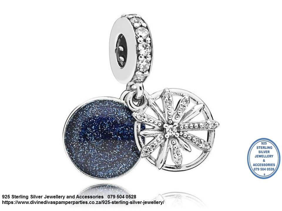 Cubic Detail Double Dangle With Blue Enamel Sterling Silver Charm.