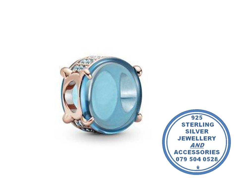 Rose Gold PLATED Blue Oval Cabochon European Style Bracelet Compatible