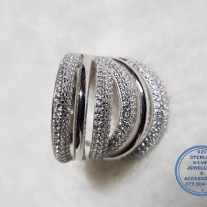 Statement Oval with many side bands & Cubic detail in 1 Real Sterling Silver Ring SSR
