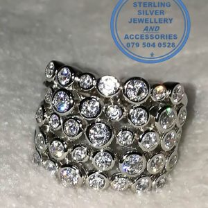 925 Sterling Silver Ring with 5 bands as 1 with multiple tube set cubics per row. Bold Statement. Stunner